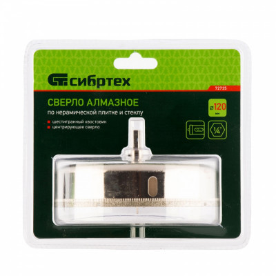 - Сверло по керамической плитке и стеклу Сибртех 72735 120х55 мм