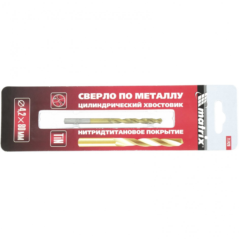 - Сверло по металлу Matrix 717420 HSS 4,2 мм нитридтитановое покрытие цилиндрический хвостовик