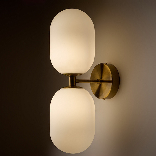 Светильник настенный Freya Sharlot FR1012WL-02BS G9х2 - каждая деталь наполнена неповторимым очарованием. Сочетание арматуры цвета латуни и белого матового стекла уже стало классикой, а новая вытянутая форма плафона создает совершенно новый облик, добавляя ощущение движения и динамики.