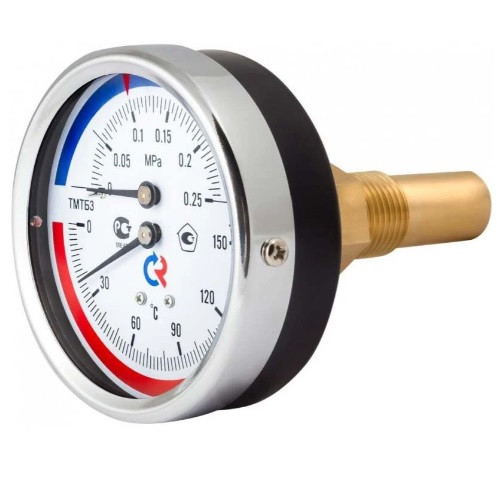 Термоманометр осевой Росма ТМТБ-31Р.1 — комбинированный прибор, предназначенный для измерения температуры и избыточного давления неагрессивных к медным сплавам сред в системах теплоснабжения и водоснабжения.