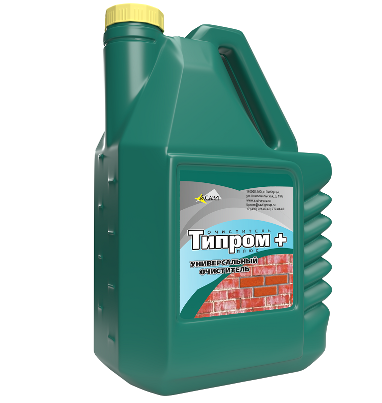 Очиститель фасадов Типром Плюс – концентрат, представляющий собой смесь кислот с добавлением поверхностно-активных веществ. Средство применяется для очистки фасадов из кирпича, натурального и искусственного камня, штукатурки от солевых отложений (высолов), остатков цементного раствора и стойких атмосферных загрязнений.