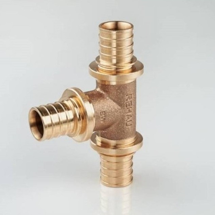 Тройник для PE-X труб бронзовый Rehau Rautitan Platinum RX 13777321001 Дн 25х20х25 мм с уменьшенным боковым проходом