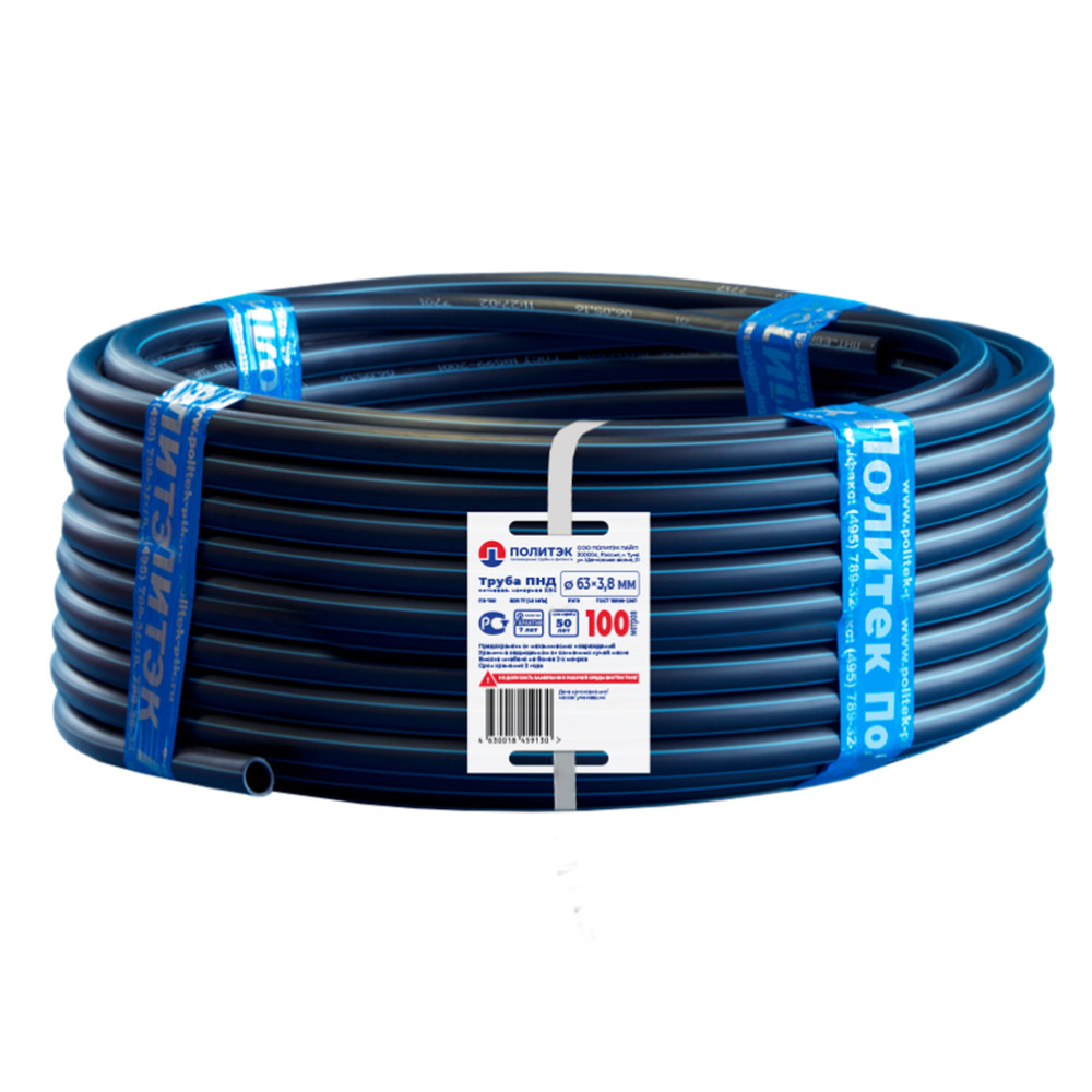 - Труба Политэк PN10 SDR 17 PE1W063038 63х3,8 мм бухта 100 м
