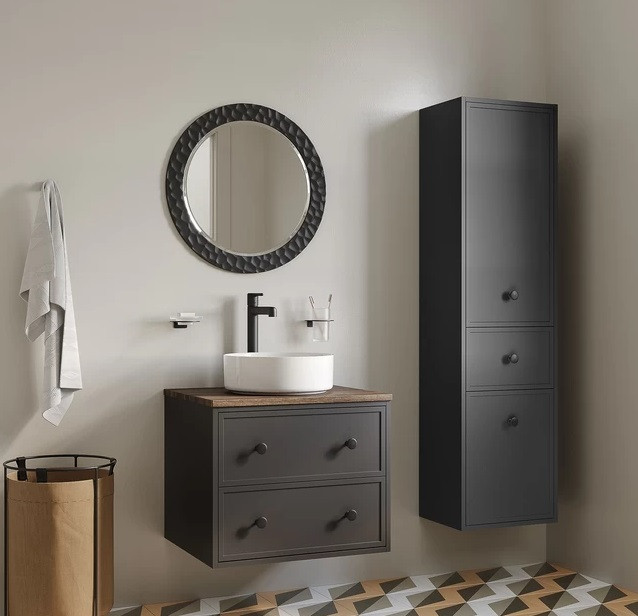 Тумба со столешницей Iddis Torr TOR60DMi95K трендового темно-серого цвета со столешницей в оттенке ореха макадамия. Сочетает в себе узнаваемый стиль и практичность популярного скандинавского дизайна. Ее четкие формы, теплый цвет дерева, фасады с декоративной филенкой, круглые ручки смотрятся гармонично и впишутся в любой современный интерьер. Подойдет любой накладной умывальник, покупается отдельно.