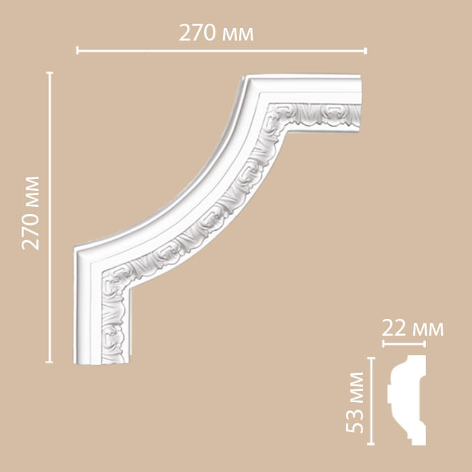 Угол декоративный для молдинга Decomaster DP-8053B 270х270х22 мм