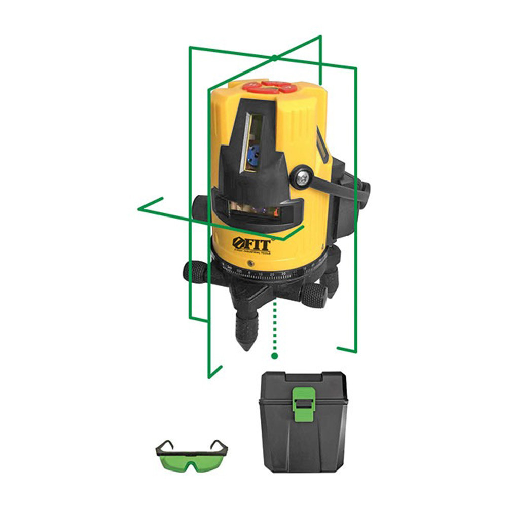 FIT 18635 - профессиональный самоуспокаивающийся лазерный уровень, горизонталь + 4 вертикали. Устройство предназначено для точной разметки помещений и объектов, обеспечивая высокую точность измерений и удобство эксплуатации. Универсальное решение для профессионалов строительного дела, инженеров и дизайнеров интерьера, которым важна высокая точность и надежность инструмента.