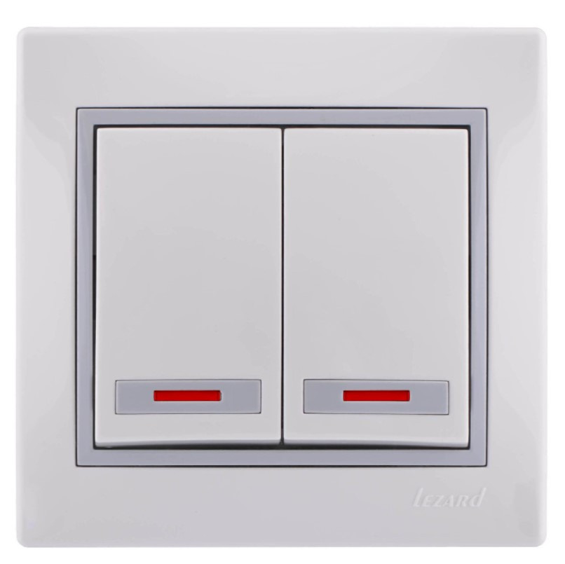 - Выключатель двухклавишный Lezard Mira 701-0215-112 с подсветкой белый со серой вставкой
