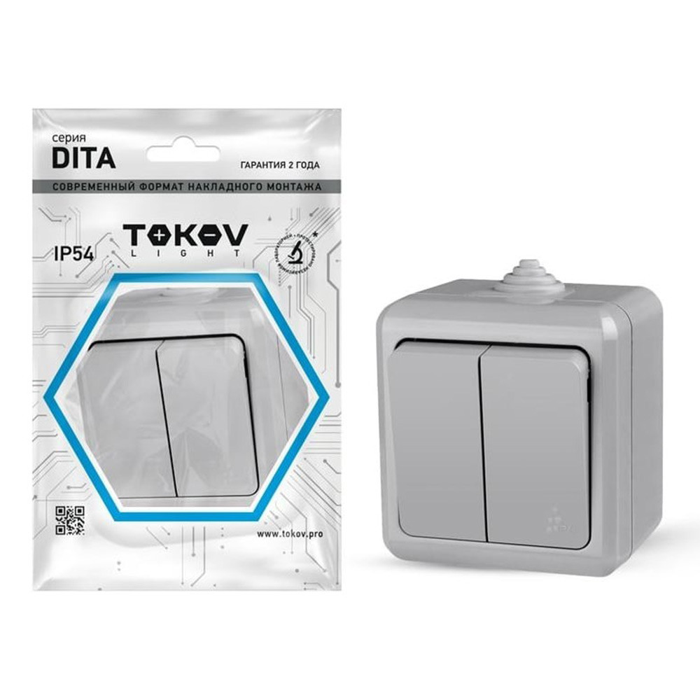 - Выключатель Tokov Electric ОП Dita TKL-DT-V2-C06-IP54 двухклавишный серый