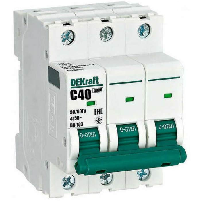 - Выключатель автоматический модульный DEKraft ВА-103 12309DEK 3P 40A С 6KA