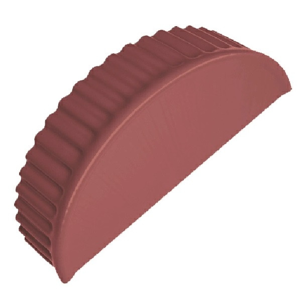 Заглушка торцевая для полукруглого конька Grand Line Satin Ral 3011 - это полукруглая плоская пластина, закрывающая торец полукруглого конька, образующийся из-за не плотного прилегания профиля конька к металлочерепице. В основном её используют при горизонтальном расположении конька.