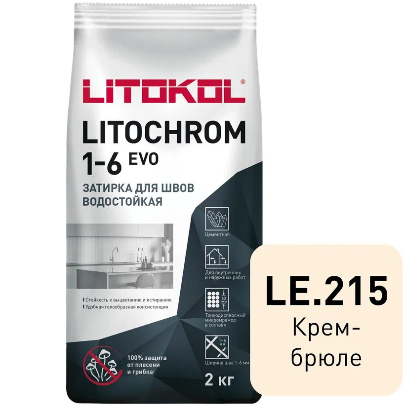 Затирка цементная для швов Litokol Litochrom 1-6 Evo LE.215 Крем-брюле 2 кг
