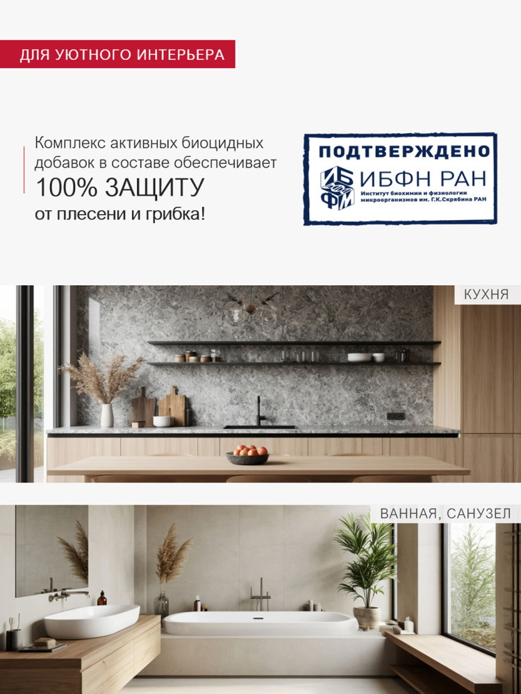 Антигрибковая добавка Специальные добавки в составе, предотвращающие развитие грибка и плесени.