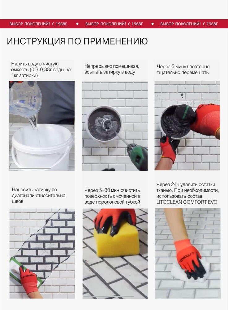 Предназначена для затирки межплиточных швов шириной 1-10 мм внутри и снаружи помещений, при облицовке стен и полов: