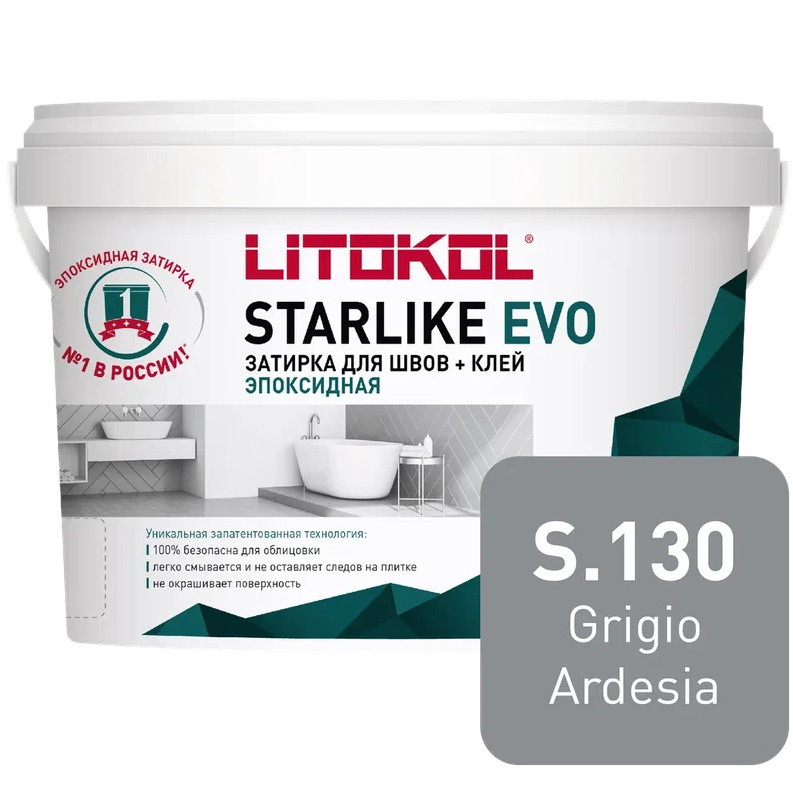 Затирка Litokol Starlike Evo S.130 Grigio Ardesia - это двухкомпонентный эпоксидный кислотостойкий, щелочестойкий состав для затирки межплиточных швов с шириной шва от 1 до 15 мм и использования в качестве клея для всех видов облицовочной плитки и мозаики. Компонент А представляет собой смесь эпоксидной смолы, цветных микросфер и специальных органических добавок. Компонент В — инновационный органический катализатор (отвердитель).