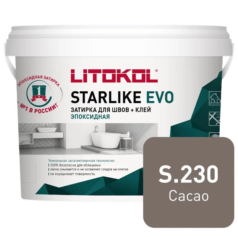 Преимущества затирки эпоксидной для швов Litokol Starlike Evo S.230 Cacao 5 кг: