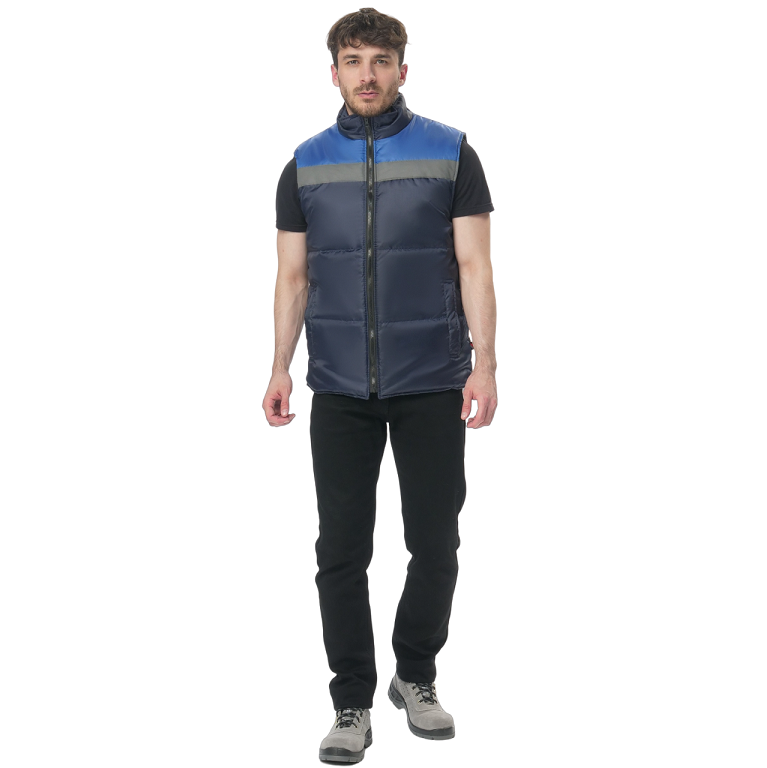 Жилет утепленный Факел Экспертный СОП темно-синего цвета с васильковыми вставками предназначен для комфортной работы в холодное время года или повседневной носки на прогулках, во время путешествий и активного отдыха.